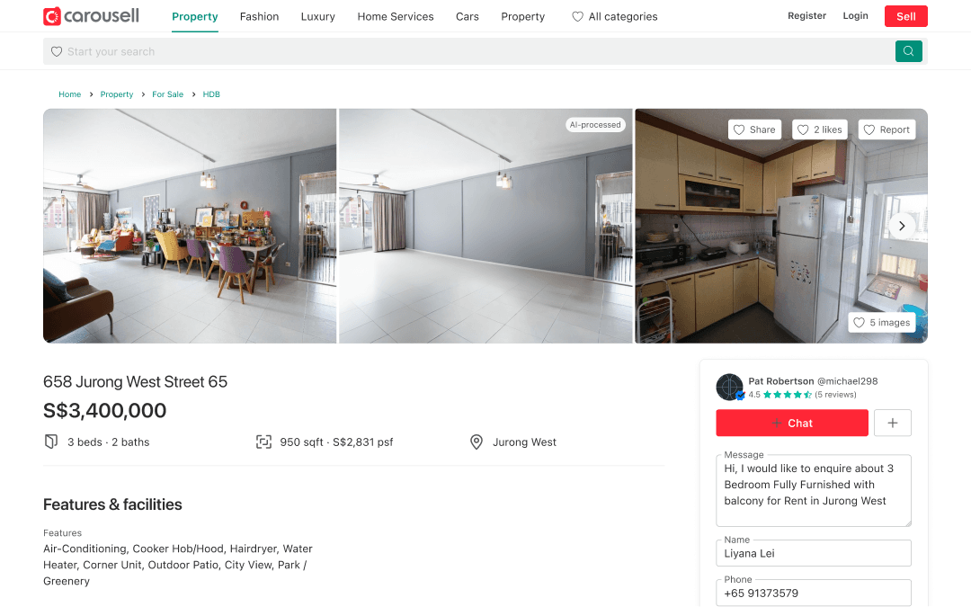 Property agents on Carousell faced mounting costs and time pressure managing multiple listings. Professional photography and staging were cost-prohibitive when handling 10-20+ properties simultaneously, forcing agents to either absorb costs or publish suboptimal photos that reduced listing performance.